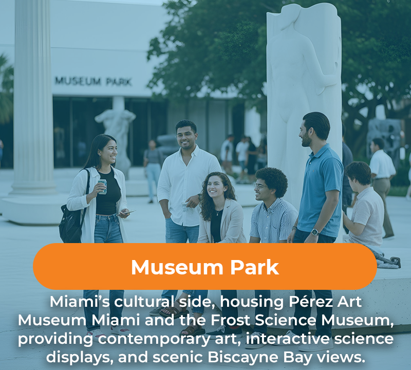 LANGUAGE ON’s English School in Miami in Brickell is located on the second floor of an office building. We have 14 classrooms and a large break area where students can relax and practice English with their classmates. Our school is surrounded by shops and restaurants that students can visit before and after class. The school is near a variety of parking options and can be easily reached by public transportation including bus and metro/train.